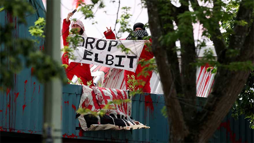 On Tuesday, the group said its activists had blocked the entrance to an Elbit site in Bristol, southwestern England, and that other members had occupied the rooftop of a subcontracting firm in Suffolk, eastern England, it said had links to Elbit.
