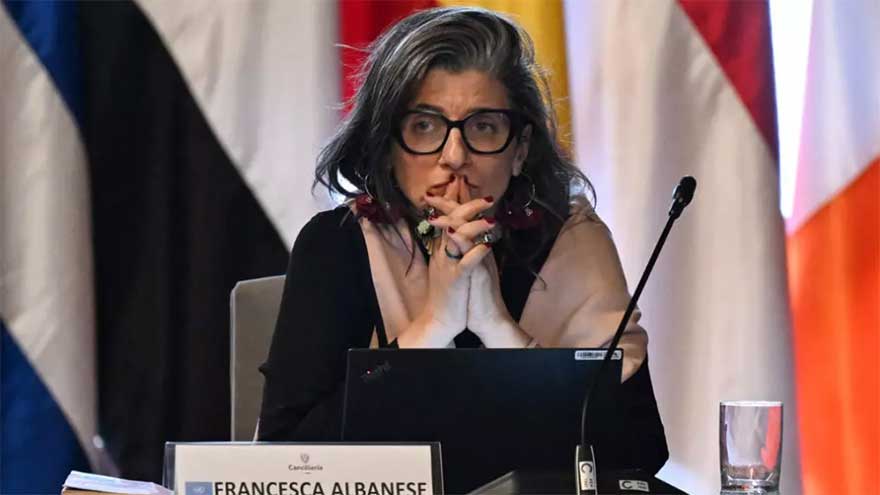 Albanese was in Bogota to attend an international summit initiated by leftist President Gustavo Petro to find solutions to the Gaza conflict.