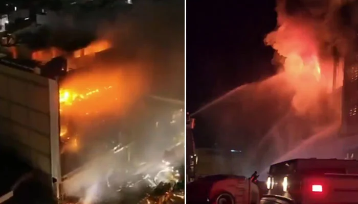 Videos circulating on social media showed flames engulfing a five-storey building in al-Kut overnight as firefighters tried to contain the blaze.