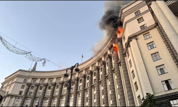 After Sunday’s attack on Kyiv, flames could be seen rising from the roof of the sprawling government complex that houses Ukraine’s cabinet of ministers in the heart of the city — the first time it has been hit during the three-and-a-half-year conflict.