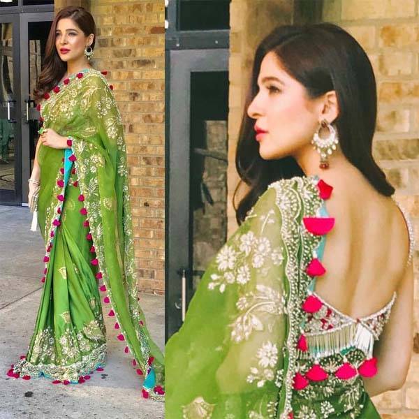 Ayesha Omar wore a distinctly traditional outfit to the Overseas Pakistani Power Awards in London, appearing in a green saree styled with contemporary touches.