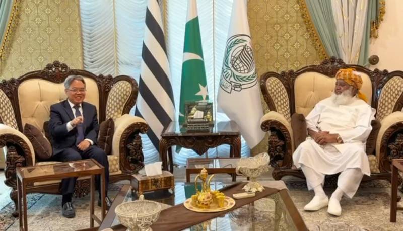 Chinese Ambassador to Pakistan Jiang Zedong Thursday called on JUI-F chief Maulana Fazlur Rehman at his residence in Islamabad, where both sides held detailed discussions on regional developments, peace, and bilateral relations.
