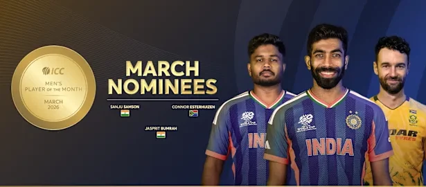 Leading the nominations are India’s dynamic duo, Sanju Samson and Jasprit Bumrah, alongside South Africa’s rising star Connor Esterhuizen. All three players delivered remarkable performances during a high-pressure month dominated by the ICC Men’s T20 World Cup 2026.