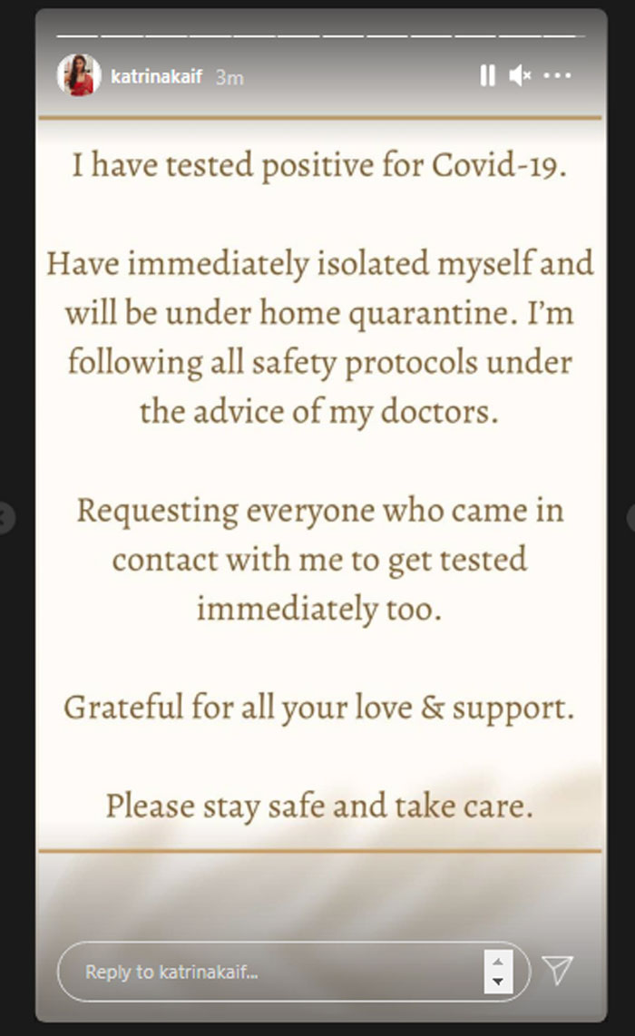 Katrina was tested positive for coronavirus on April 7 and immediately isolated herself at home.